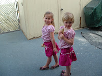 Dariya had an awesome day. We went to the park and had cupcakes with friends, Dariya went shopping with grandma Wright, and we all went to Organ Stop Pizza for dinner. It was a great day. She is now 5 and excited to not need a booster seat anymore. She's all registered for school in the Fall. (That's what happens when you only have 2) Ok, so, call me a bad mom, but i enjoy not being behind a camera so i dont have any pictures of Dariya's birthday. Here's Arden and Dariya in their new outfits.